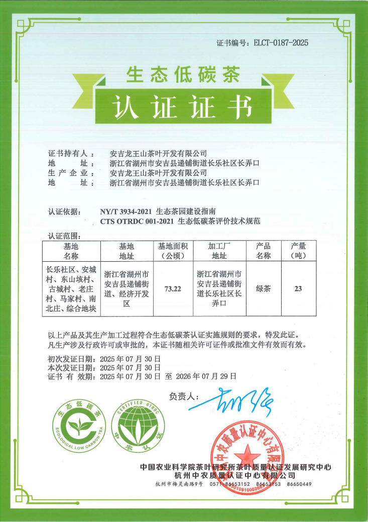 地址:浙江省湖州市安吉縣長弄口古鄣東路安吉龍王山茶葉開發(fā)有限公司